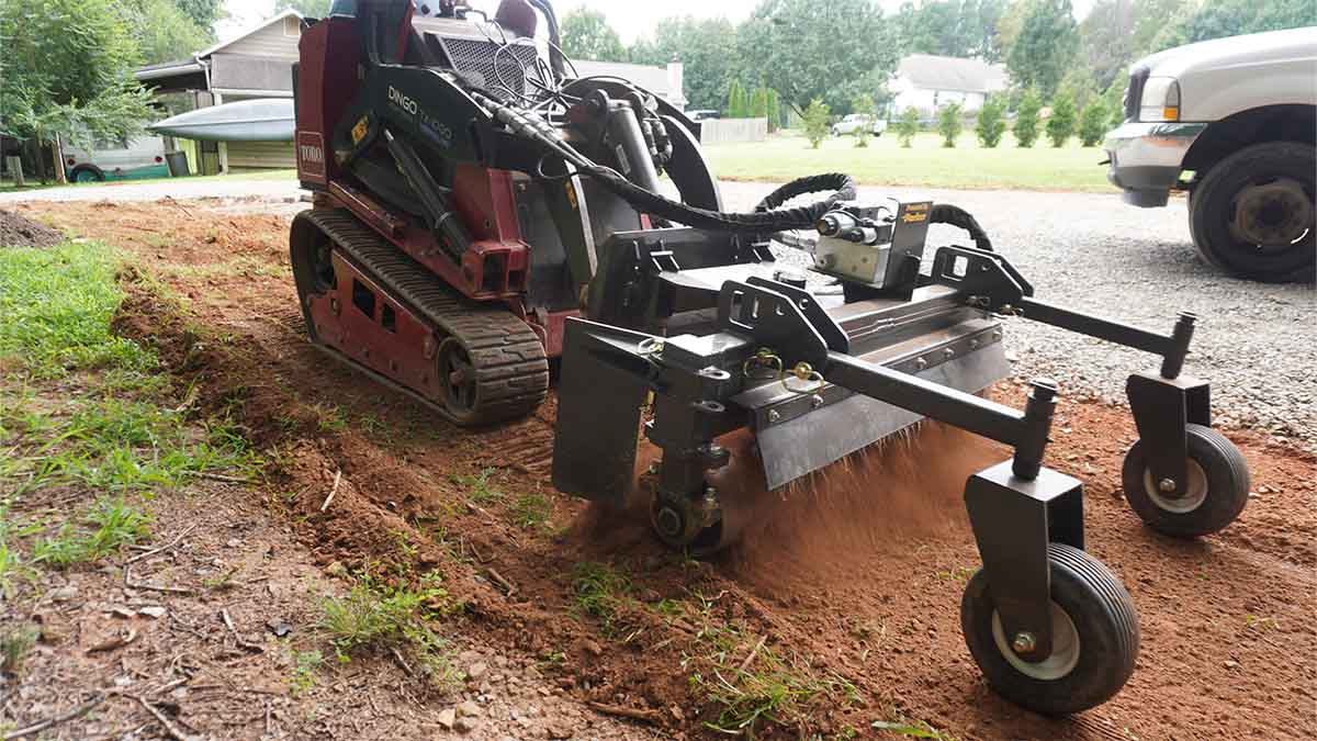 Handle grading, leveling, seedbed prep, and cleanup with a heavy-duty mini skid steer power rake built in the USA. Available in 36″, 48″, and 60″ widths, it’s designed for versatility with features like a bi-directional drum, 25° tilt, and multiple mount options. Whether you’re working in landscaping, property maintenance, or jobsite prep, this rake gives you the control and durability you need to get the job done.