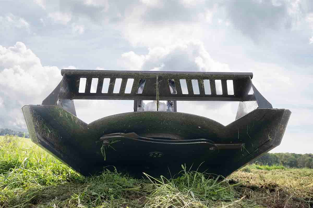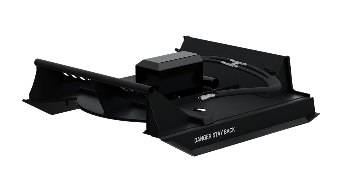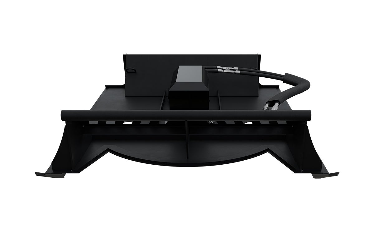 Clear brush, thick grass, and trees with a heavy-duty cutter built for serious land management. The Skid Steer Heavy Duty Brush Cutter is powered by a high torque Parker motor and a RC100 right-angle gearbox (144 HP rated), delivering reliable cutting force without requiring a case drain. Available in 2-blade or 3-blade configurations, each using 5/8″ AR400 steel blades, this cutter takes down material up to 4″ thick. The open front design with a 14″ push bar helps feed brush and trees into the stump jumper blade holder, making it effective for tough clearing jobs.