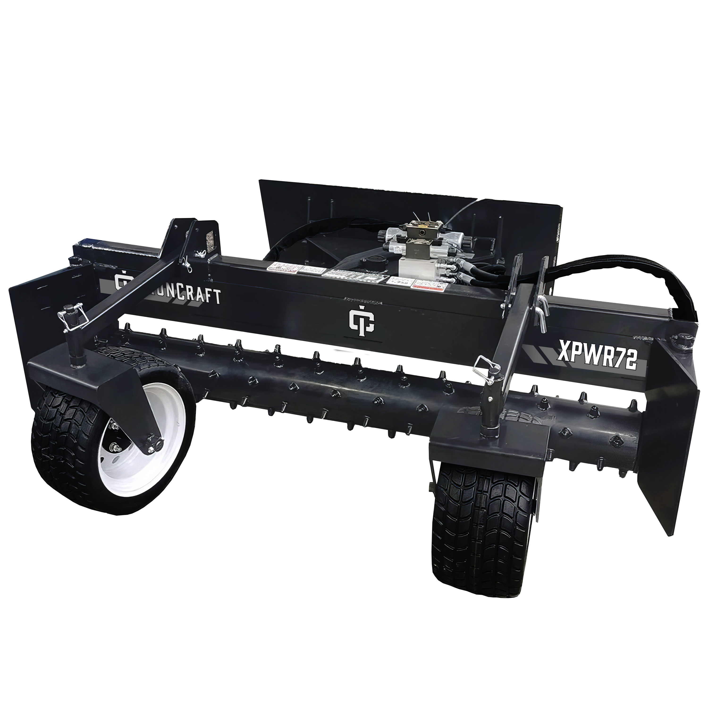 - Bi-directional drum with carbide teeth for aggressive raking and soil conditioning