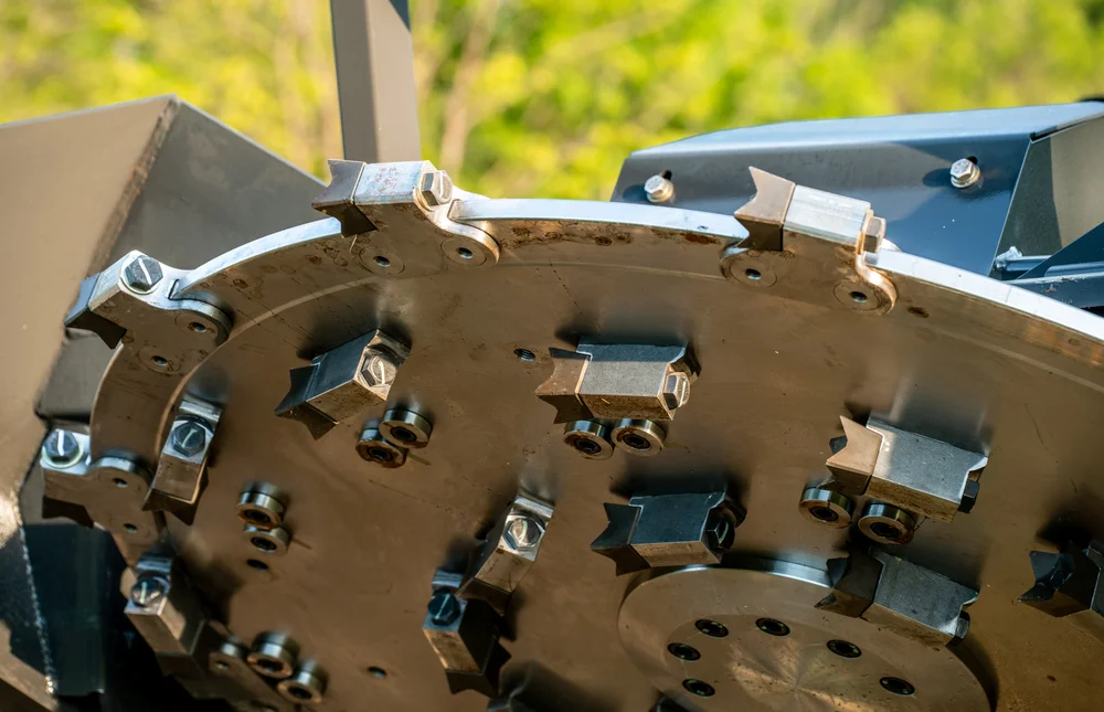 The Forestry Disc Mulcher can quickly mulch 4” material and effortlessly cut trees up to 8” in diameter. It features a 44” (or 60″) diameter cutting area with a machined and statically balanced disc. Available with two motor options: a 100 CC for 20-30 GPM or a 150 CC for 30-44 GPM. The disc holds 30+ mulching teeth (depending on size), providing ample power for your toughest clearing needs. A case drain is required for this attachment. A closed forestry style cab is strongly recommended for use with this mulcher! Teeth are four sided beaver style and are replacable. We do not recommend using anywhere near people, windows, or animals.