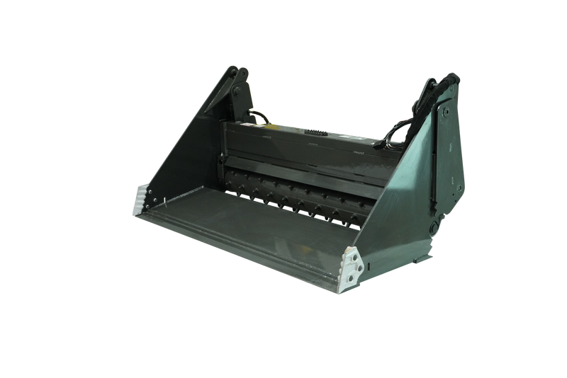 The CID Multi Purpose Power Rake is an innovative landscape tool that combines a 4N1 bucket along with a power rake. No longer will you have to change attachments to finish preparing the soil bed. You can now use your rake for back dragging, digging, and grappling. Offered in various widths and sizes for full size machines to mini skid steer. The Multi-Purpose Power Rake comes stock with a smooth edge, with the option for a Bolt on Edge or welded teeth.