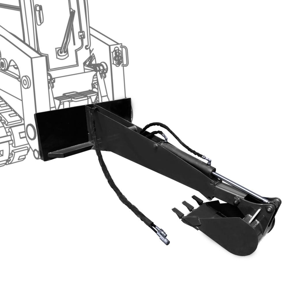 Our X-treme Stiff Arm Backhoe is an excellent tool for digging ditches, removing stumps, and digging footings. You can add a thumb to move logs, chunks of cement, and more. Buckets are available in sizes of 8″, 12″, 16″, 20″, and 24″, powered by an American-made 3″ x 16″ cylinder. With a 7′ digging depth and 14,000 lbs. of ripping force, this backhoe is an aggressive digging machine.