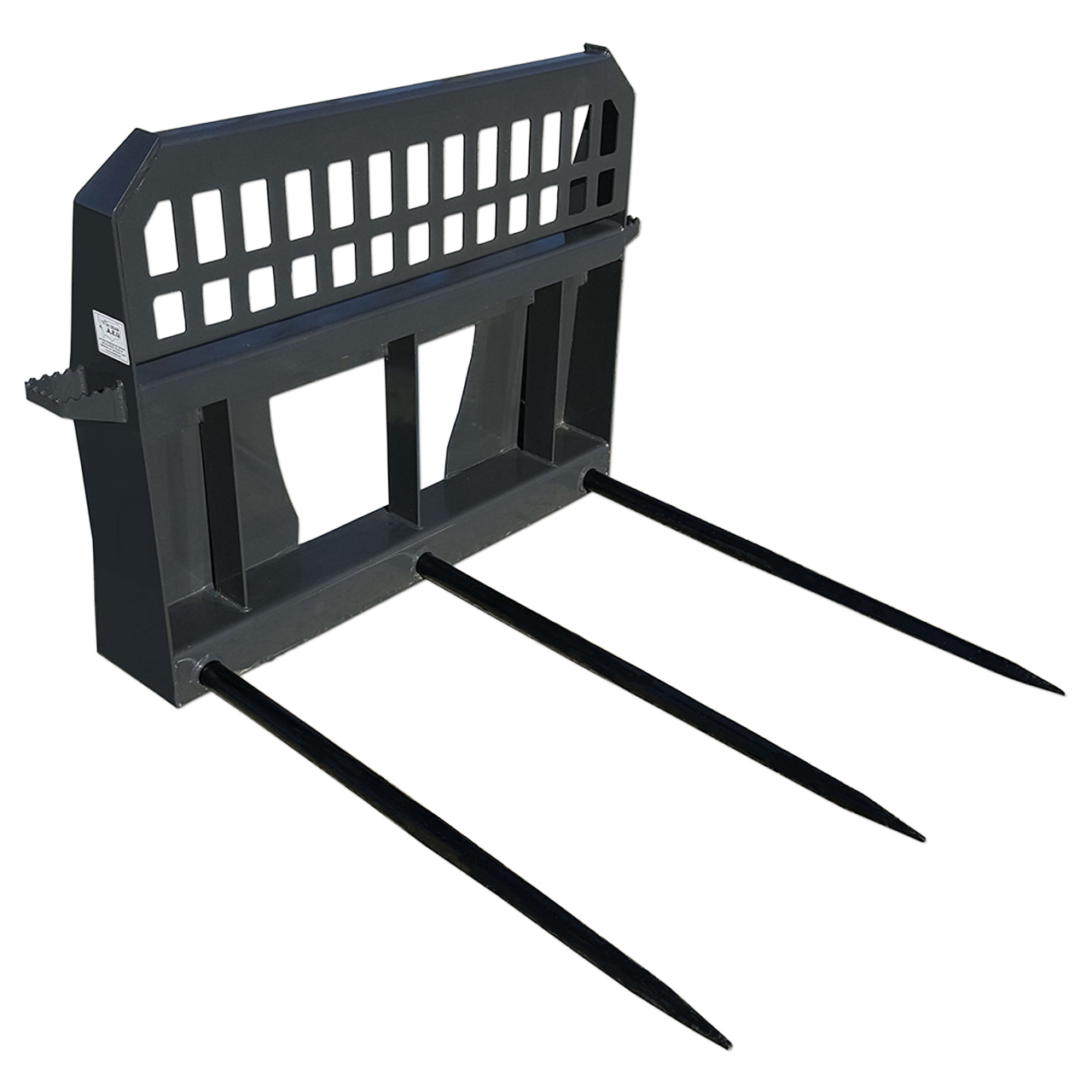 | Our High Back Hay Spear is designed to increase your leverage and safety when rolling the bales back towards the cab. Hay Spears easily move bales of hay with a quick hook up on your skid steer or tractor. Euro style and John Deere mounts are available. |